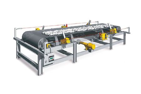 它是一種通過(guò)檢測(cè)輸送帶的速度變化來(lái)檢測(cè)驅(qū)動(dòng)輥和輸送帶是否打滑的裝置。當(dāng)輸送機(jī)正常運(yùn)行時(shí),當(dāng)帶速降低到一定值時(shí),保護(hù)裝置會(huì)發(fā)出打滑低速報(bào)警信號(hào),并在驅(qū)動(dòng)輥速度低于正常速度的70%后發(fā)出自動(dòng)停機(jī)指令。