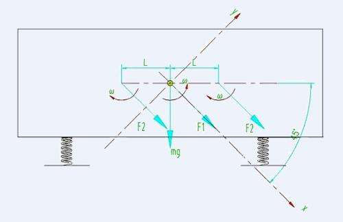 橢圓振動篩電動機通過傳動帶驅(qū)動齒輪箱式同步器使三軸強迫同步,其中中間軸與兩側(cè)軸轉(zhuǎn)向相反,相應帶動三組塊偏心式振動器篩箱的座式安裝振動篩。篩箱運動軌跡為橢圓形,電動機可左裝或右裝 。